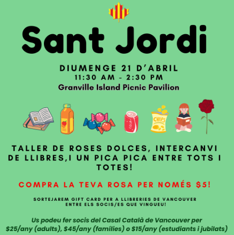 Bring a book wrapped in dark paper so you can exchange it at the mistery book exchange, bring your kids (and/or your sweer tooth) for the sweet (and edible) roses workshop, and some spare cash to buy a rose to your sweetheart (and the satisfaction of supporting the Casal activities!).